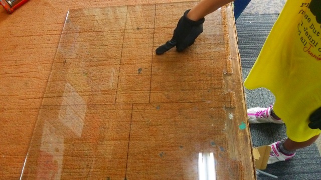 簡単にガラスが割れます。(手袋、ゴーグルなど使ってけがをしないよう安全対策第一)